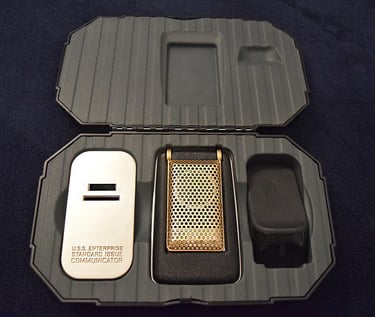 Star Fleet Standard Issue Communicator. Unfortunately, the voices and commands were all imaginary as my Communicator was just a toy. Not any more! 43 years later, that “toy” has become reality with The Wand Company’s Star Trek Bluetooth Communicator.