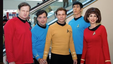 I caught the Star Trek fever after its original run from 1966-1969. As a kid back in the 70's. Along with my brother, we made cardboard communicators and other accessories. I have many Star Trek toys, walkie talkie communicators, etc. etc. I go to Star Trek conventions and do improv Star Trek comedy skits, sometimes in character in public. Star Trek has had a big impact on my life. Come, join the fun with improv skits.