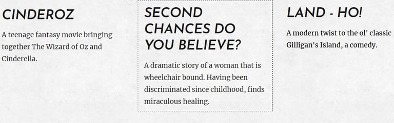 IF YOU ARE ALSO WANTING MORE EXPEREINCE FOR YOUR RESUME, WE HAVE OVER 30 FILMS TO CHOOSE FROM: